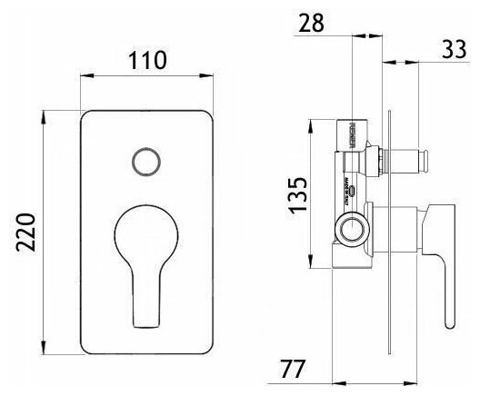Смеситель для ванны с душем Mariani предназначен для скрытого монтажа. Он состоит из двух частей: внешней, куда входит ручка смесителя, декоративная панель, кнопка переключения, которая позволяет переводить поток воды с излива на верхний душ (возможен вариант переключения верхний душ/душевая лейка), и внутреннего, к которому подсоединяются трубы с холодной и горячей водой, трубы к изливу или верхней душевой насадке. Видимым при этом останется только внешний блок, который выполнен в минималистическом стиле. Он представляет собой хромированную прямоугольную пластину с эффектно закругленными краями, на которой симметрично один под другим располагается кнопка переключения и ручка смесителя. Все внешние элементы управления просты в использовании, эргономичны и эстетичны. Их элегантные формы имеют очень универсальный дизайн, поэтому они не диктуют стиль оформления помещения и предполагают довольно широкое использование. Внутренняя часть смесителя комплектуется керамическим картриджем, который выдерживает перепады давления воды и стоек к гидравлическим ударам.