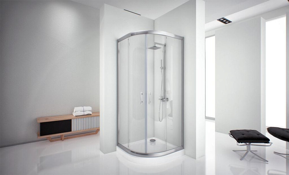 Такой стеклянный душевой уголок великолепно заменяет собой душевую кабину, но, в отличие от нее, дает больше возможностей рационально использовать площадь ванной комнаты по причине отсутствия задних стенок. Душевой уголок можно наполнить подходящим оборудованием – смесителем с душевой лейкой, душевым гарнитуром или даже полнофункциональной душевой панелью с гидромассажем, которые крепятся непосредственно на стену. Возле незадействованных боковых стенок можно расположить умывальник, корзину для белья, пенал, тумбу или другую мебель. Специальное ударопрочное стекло имеет антигрязевое покрытие, которое облегчает уборку душевой кабины и отталкивает конденсат.