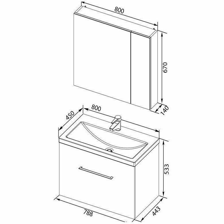 | Вид товара | Комплект мебели (тумба, раковина, зеркало/зеркало шкаф) |