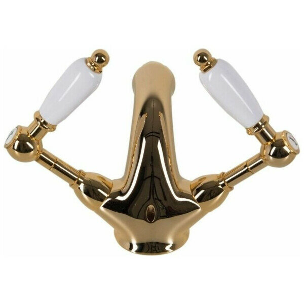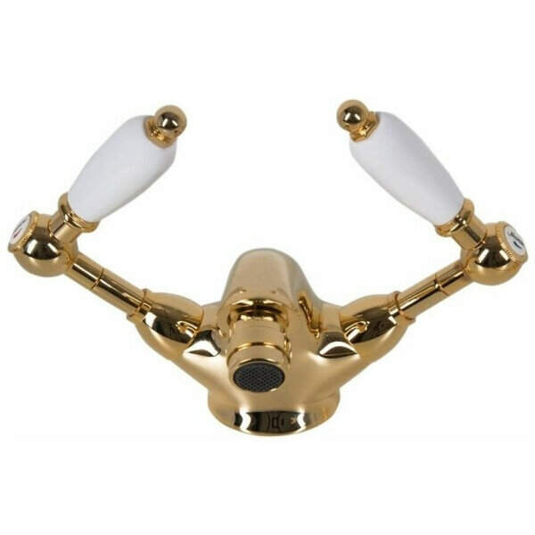 Смеситель для биде Mariani словно уносит нас в атмосферу начала прошлого века: короткий и эргономичный излив, золоченое покрытие, белые округлые детали рычагов переключения. Впрочем, несмотря на внешность в стиле ретро, «начинка» у смесителя самая что ни на есть современная. В частности, он оснащен керамическим краном-буксой, который значительно продлевает срок жизни крана, поскольку керамические детали изнашиваются значительно дольше. В комплекте со смесителем предусмотрен донный клапан, выполненный в едином стиле и в том же золотом цвете.