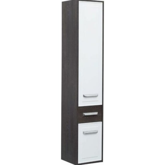 Шкаф-пенал для ванной Aquanet Остин 35 в цвете "дуб кантербери/белый" чрезвычайно эффектно смотрится благодаря яркому контрасту шоколадных деревянных деталей корпуса в цвете «дуб кантербери» с белыми глянцевыми фасадами выдвижных ящиков со строгой фрезеровкой. Лаконичные хромированные ручки подчеркивают элегантность узора на фасаде. Шкаф-пенал шириной 35 см и высотой 180 см станет настоящим украшением интерьера ванной комнаты.