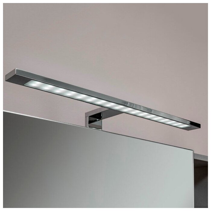 Светильник Aquanet - это широкая полоса светодиодов, заключенная в элегантный корпус длиной 280 мм из алюминия с хромированным покрытием. В качестве источника света используются светодиоды мощностью 7.2 Вт, скрытые за прозрачным акриловым экраном. Выдает ограниченную подсветку перед зеркалом. Светильник относится к числу универсальных моделей. Крепится к верхней части мебели. Крепежи расположены на специально предусмотренной для них площадке. Предусмотрены выходы для подключения к электросети. В качестве единственного источника освещения создает в ванной комнате интимную обстановку с чуть приглушенным освещением.