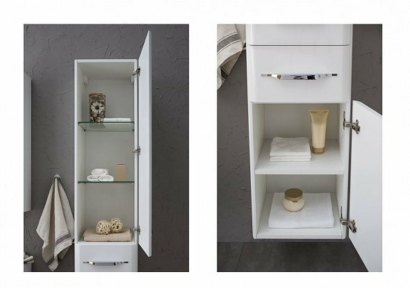 Шкаф-пенал Aquanet Виченца 36 белого цвета смотрится уютно и по-домашнему. Ощущение легкости форм подчеркивает подвесная система монтажа модели – пенал словно парит над полом. В нем три зоны хранения: полки за распашными дверцами и находящийся посередине выдвижной ящик. За счет установленных на всех дверцах и ящиках доводчиках производства компании Hettich (Германия) пользоваться пеналом будет приятно, так как открывание и закрывание дверок и ящика плавное, спокойное и без неприятных звуков. Настоящим украшением пенала служат эксклюзивные ручки производства турецкой компании System. Они выглядят очень изящно и стильно.