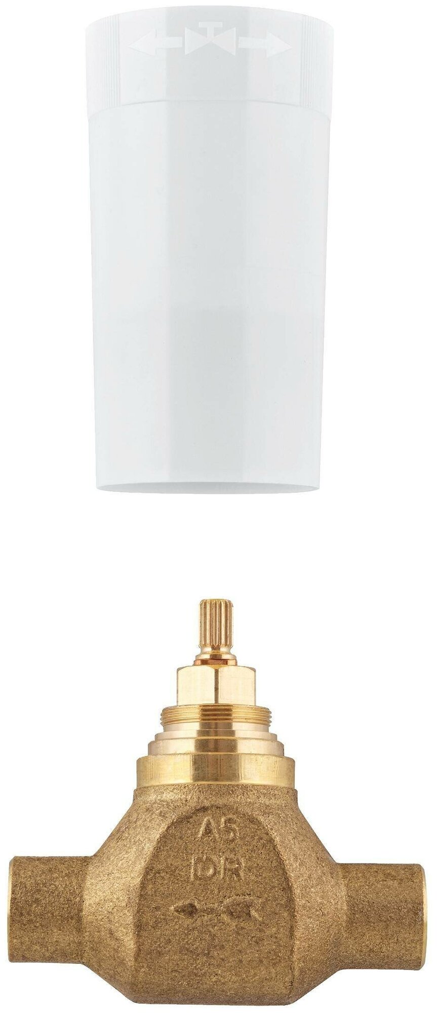 | Особенности, совместимость | с предварительно смонтированной вентильной головкой 3/4″ короткий шпиндель защитная втулка присоединение для пайки Ø18 мм DR-латунь |