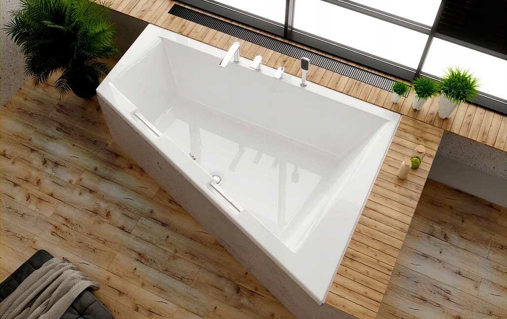 Асимметричная акриловая ванна Riho Doppio 180x130 с установкой в правый угол ванной комнаты.