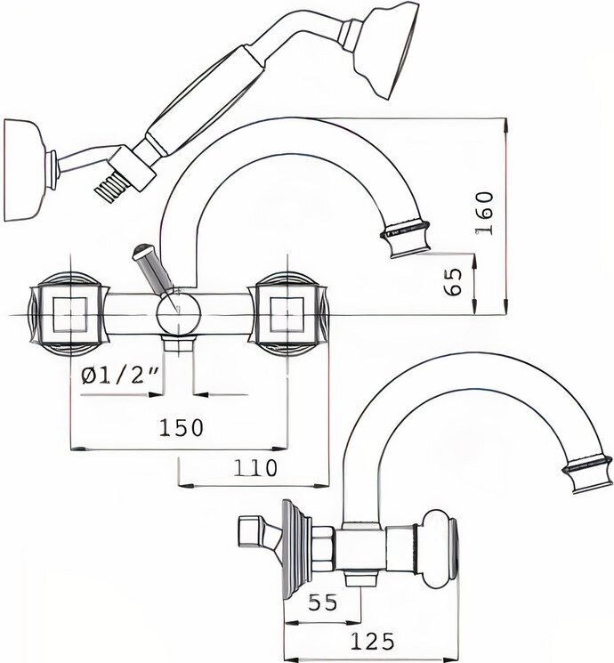 | Подключение | с эксцентриками (1/2"х3/4") |