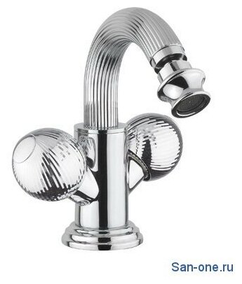 с донным клапаном. Артикул: OLIMP-BS2-02-O. Сочетает в себе инновационные технологии и продуманный до мелочей дизайн. Смеситель отличается изящным исполнением ручек и корпуса, напоминающих элементы античных колонн с плавными изгибами и скульптурными спиралями.