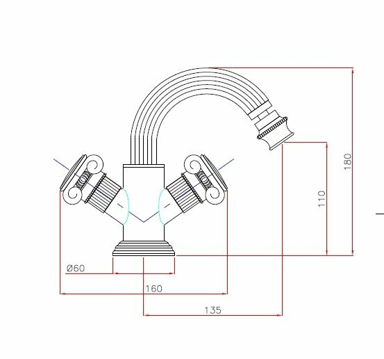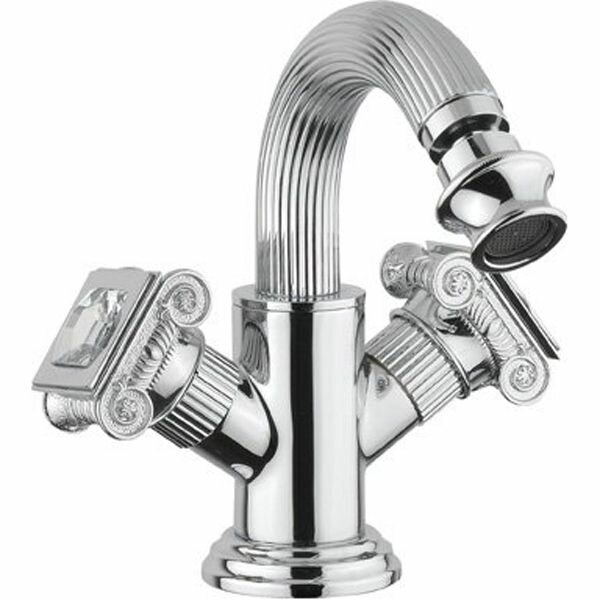 с донным клапаном. Артикул: OLIMP-BS2-01-Sw. Сочетает в себе инновационные технологии и продуманный до мелочей дизайн. Смеситель отличается изящным исполнением ручек и корпуса, напоминающих элементы античных колонн с плавными изгибами и скульптурными спиралями.