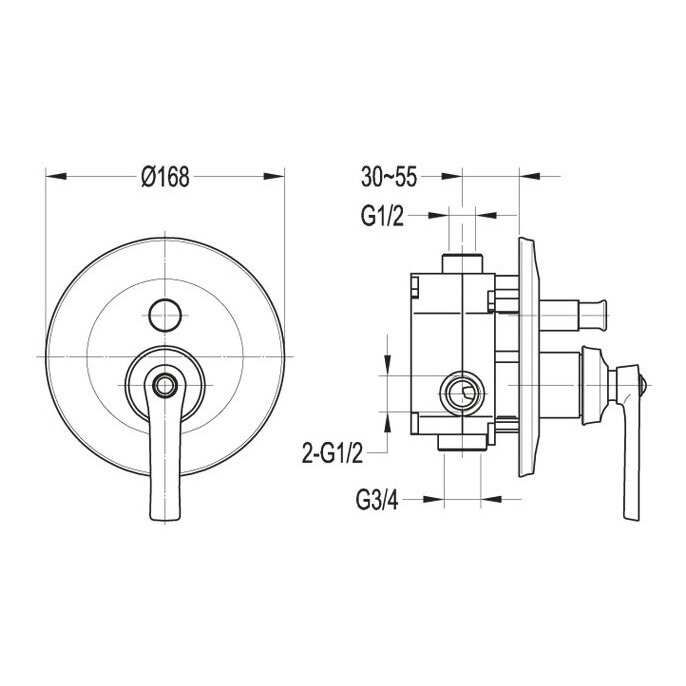 Встраиваемый однорычажный смеситель для душа с переключателем. Исполнение: Хром. Ручки: Хром. Излив отсутствует. Размер розетки: 16,8 см. Ширина: 16,8 см. Механизм: керамический картридж. Отверстия для монтажа: 1 отверстие. Тип подводки: внутренний (скрытый) монтаж 1/2". Оснащение: скрытая монтажная часть, дивертор. Внутренняя часть входит в комплект.