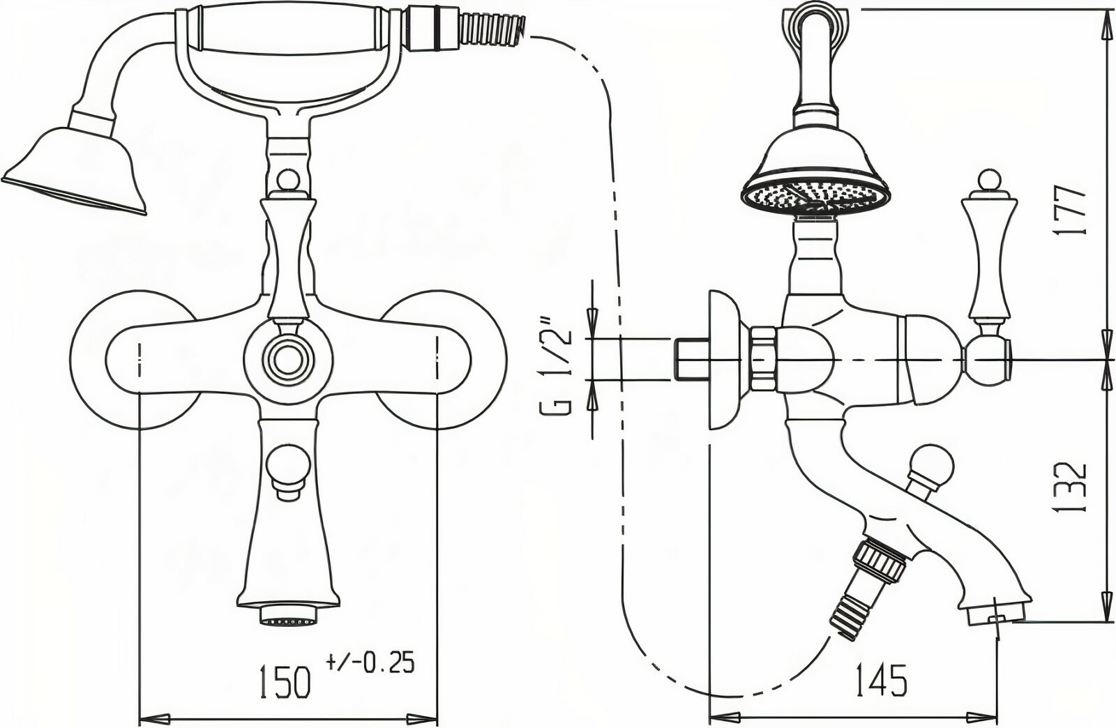 | Оснащение | дивертор, душевая лейка, душевой шланг, эксцентрики, душевая лейка, душевой шланг, держатель для душевой лейки |