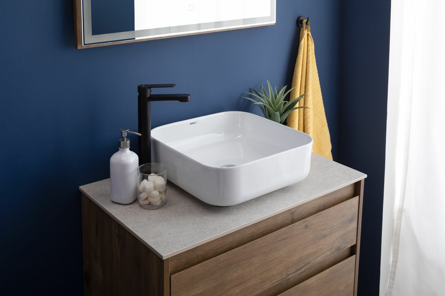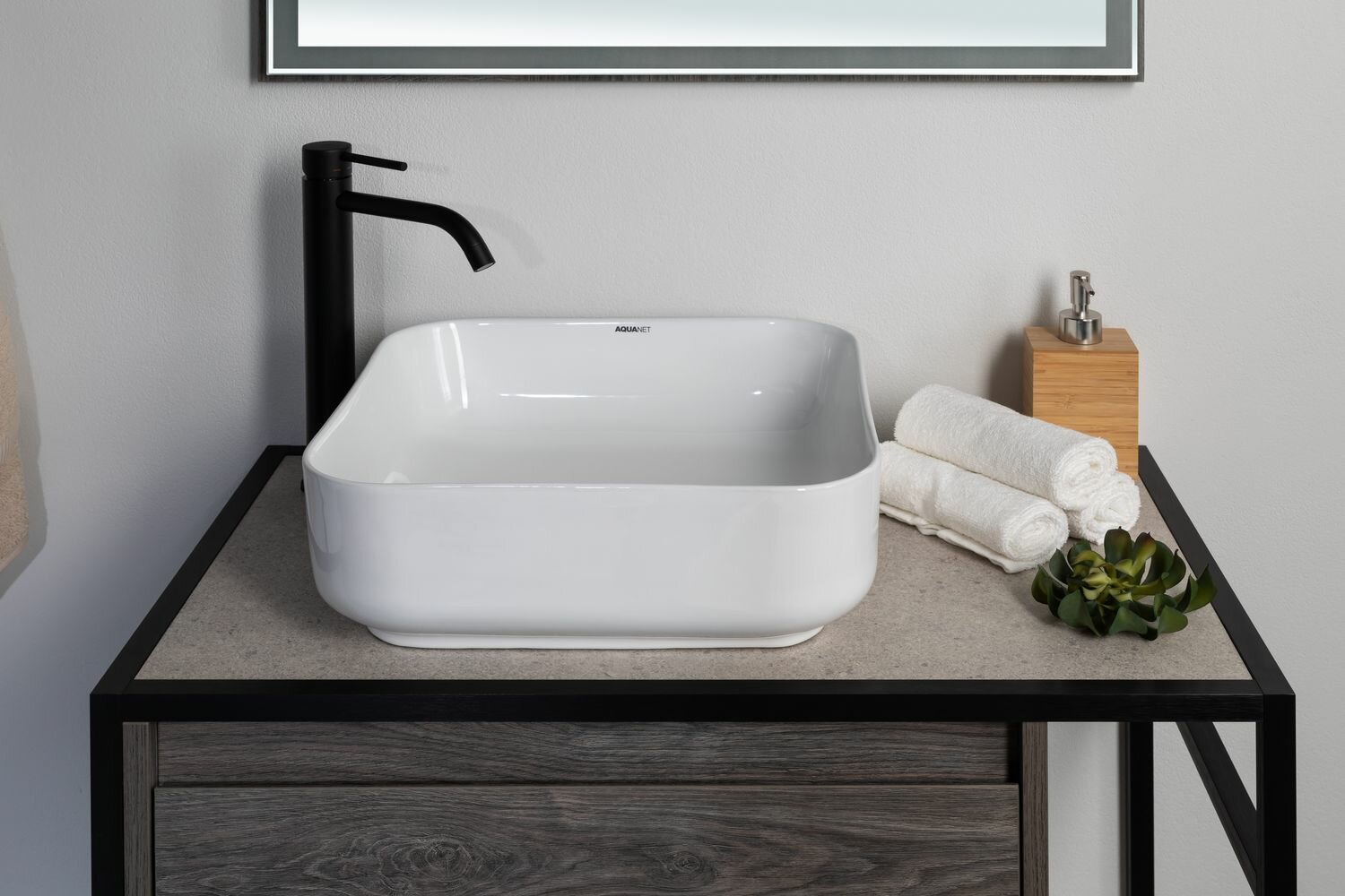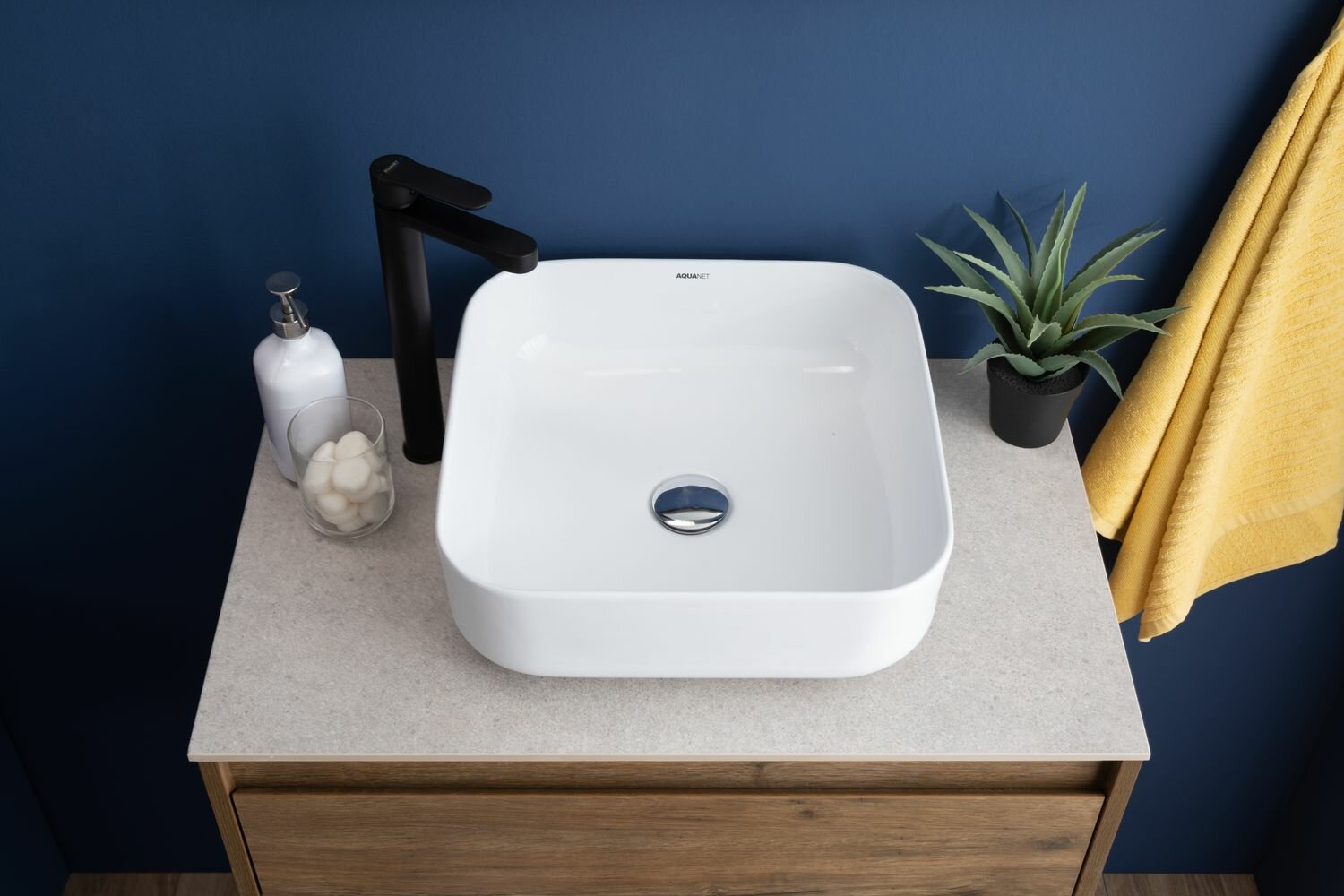 Раковина накладная Aquanet из высококачественной керамики с узкими бортиками выглядит очень изящно. Белая глянцевая чаша покрыта грязеотталкивающей эмалью, благодаря чему чистка раковины и приведение ее в порядок становится значительно проще. Раковина имеет квадратную форму 38,5х38,5 см, что гарантируют удобство ее установки и использования, так как смеситель можно поставить с любой удобной стороны, поскольку отверстие под слив находится ровно посередине. Эта компактная модель - прекрасный вариант для небольшого гостевого санузла или установки нескольких моделей в одном помещении.
