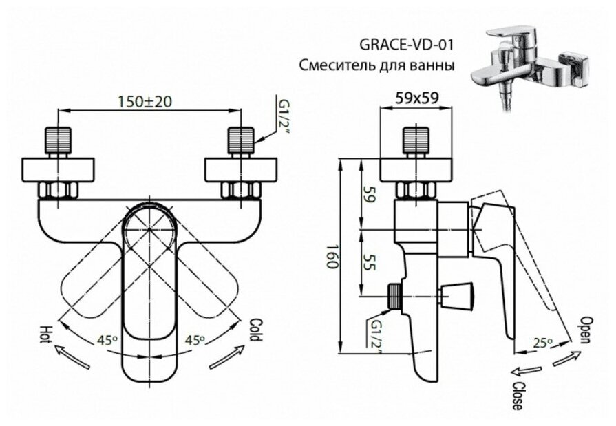 Смеситель для ванны Cezares Grace C-VD-01. Превосходно подходит для любой ванной комнаты в современной стилистике дизайна. Поможет в создании оригинального интерьера помещения.