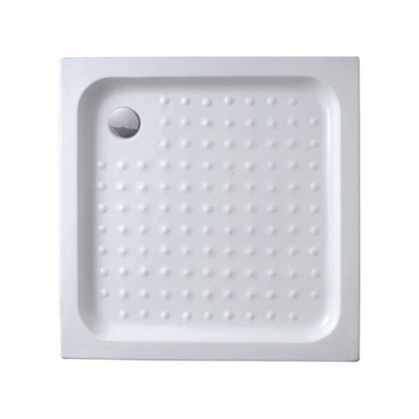 Поддон акриловый, квадратный. Особенности: металлический каркас; регулируемые ножки; антискользящий массажный рельеф; в комплекте сифон диаметром 90мм, обеспечивающий слив до 30 л воды в минуту.
