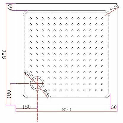 Поддон акриловый, квадратный. Особенности: металлический каркас;регулируемые ножки; антискользящий массажный рельеф; в комплекте сифон диаметром 90мм, обеспечивающий слив до 25 л воды в минуту.