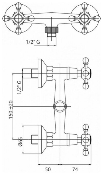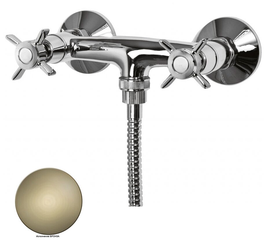 Смеситель для душа. Исполнение: Бронза. Ручки: Бронза. Излив отсутствует. Механизм: керамическая кран-букса. Отверстия для монтажа: 2 отверстия. Тип подводки: 1/2". Оснащение: эксцентрики.