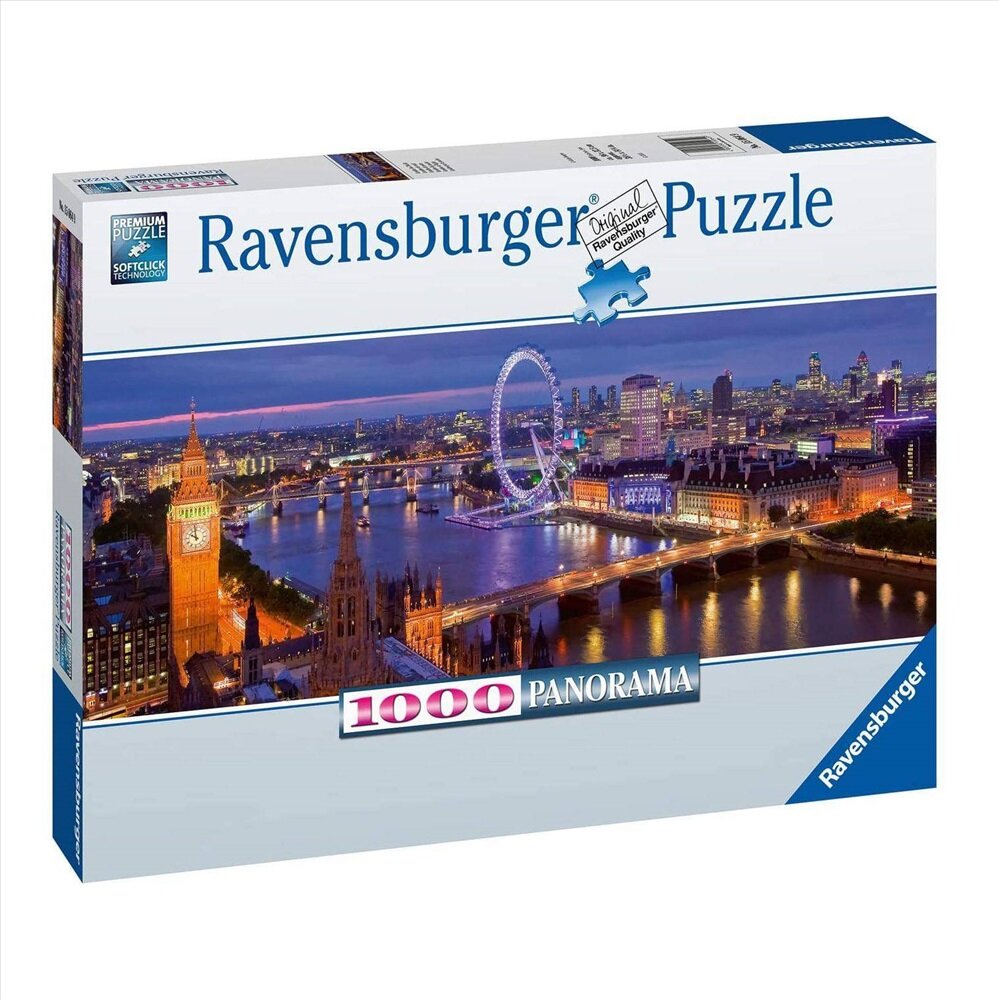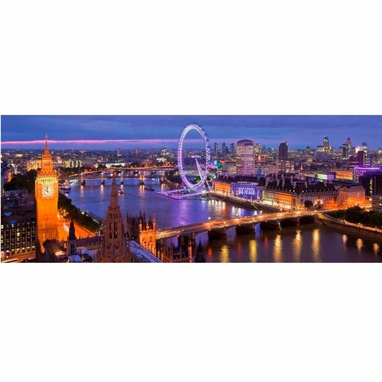 Панорамный пазл Ночной Лондон от Ravensburger представляет собой очень красивую композицию, на которой изображен вид на Лондон, способный очаровать любого случайного зрителя. Чтобы собрать пазл, необходимо скрепить между собой все 1000 элементов, представленных в комплекте. Элементы пазла сделаны из картона и бумаги. Окрас элементов отличается качественностью выделки, поэтому после окончания сборки композиция будет выглядеть ярко и элегантно и по достоинству украсит внешний вид комнаты, если будет размещена на стене. Размер готовой картинки: 98х38 см.