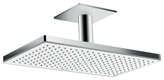 Верхний душ Hansgrohe . Цвет хром. Размер душевого диска: 460 x 270 мм. Тип струи: Rain. Расход воды для струи Rain (при 3 бар): 21 л/мин. Легкоочищаемый душевой диск. Материал душевого диска: безопасное стекло. Съемный душевой диск для очистки. Съемный верхний душ для очистки. Металлическое потолочное подсоединение. Длина потолочного подсоединения: 100 мм. Монтаж: потолок.