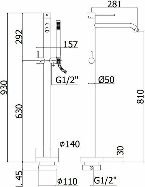 Смеситель для ванны напольный с душем MASTER из металла и шлангом из PVC 1500мм, без БАЗЫ арт LIG031, Хром