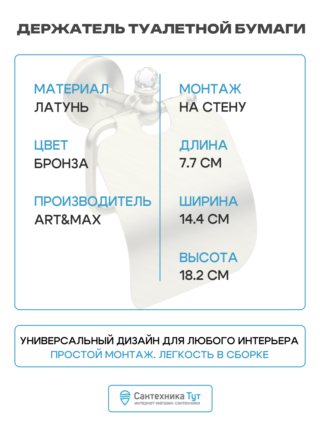 На сегодняшний день товар «Держатель туалетной бумаги Art&Max Antic Crystal AM-2683SJ-Br (AM-E-2683SJ-Br)» можно купить с кешбеком в 2 магазинах: Santehnika-room, Сантехника Тут