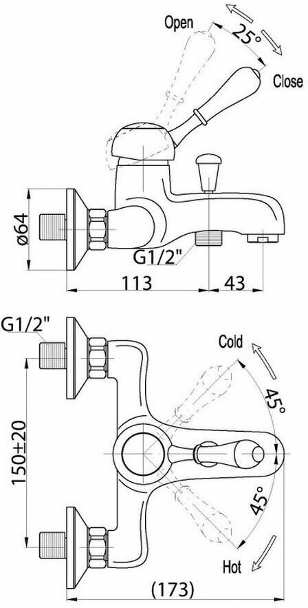 | Подключение | с эксцентриками (1/2"х3/4") |