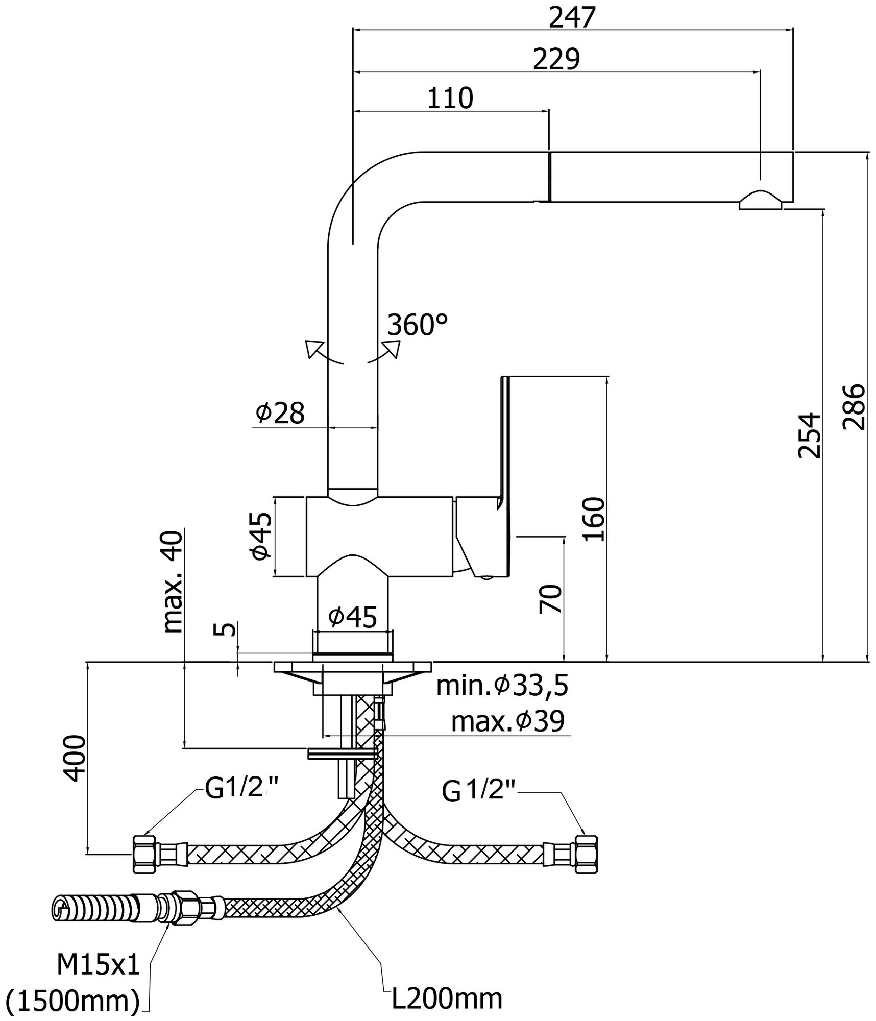| Оснащение | ручной выдвижной душ, гибкая подводка |