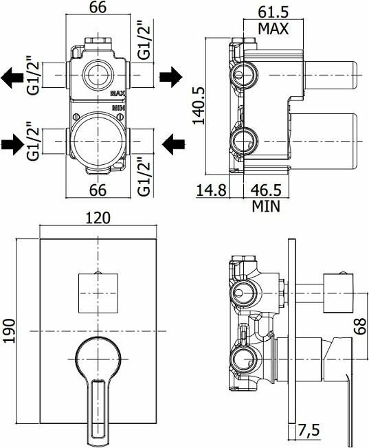 | Дополнительная информация | смеситель на 2 выхода с накладкой из нержавеющей стали, 2 положения + 1 комбо |