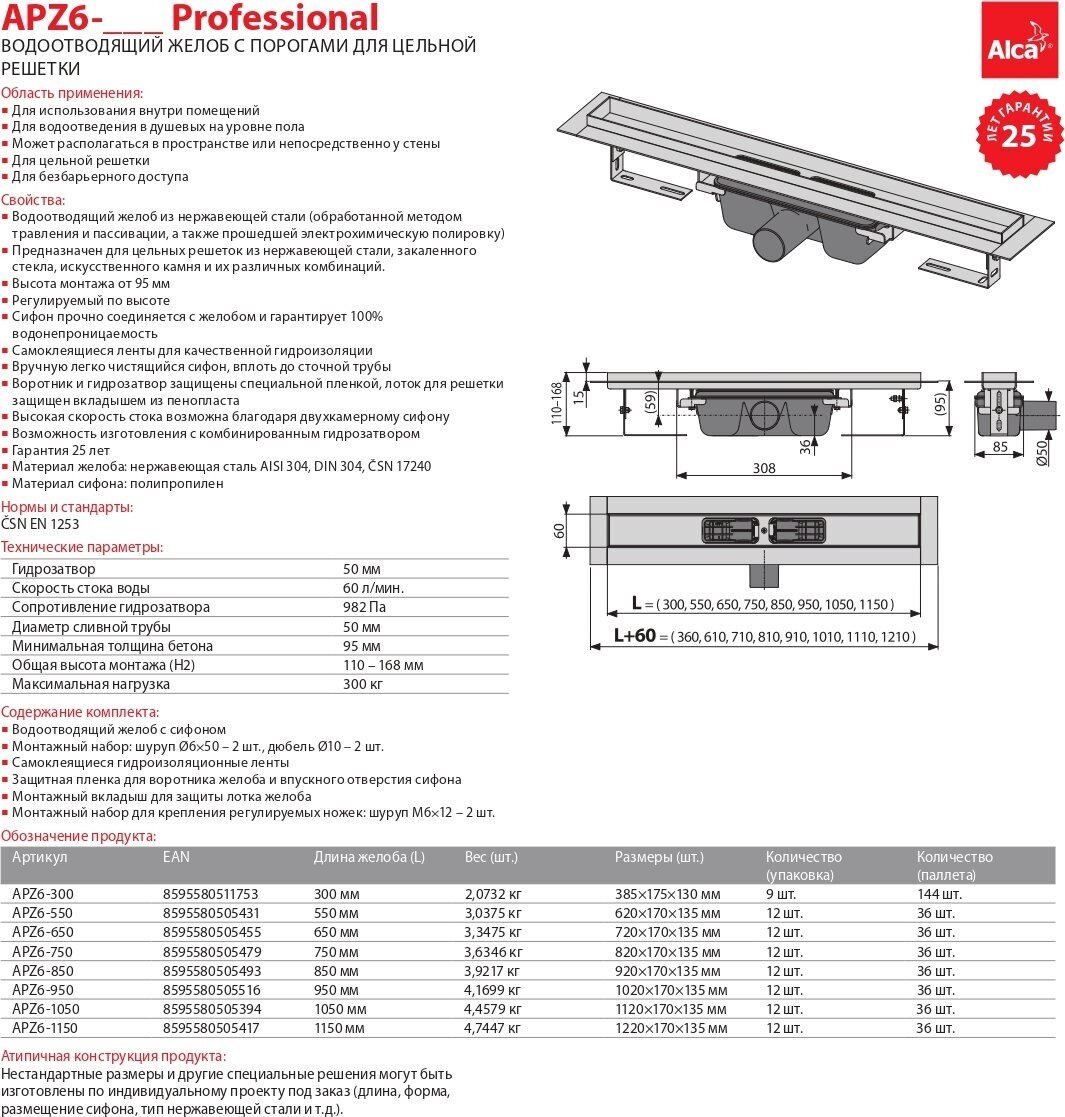 Сервис сравнения цен СкидкаГИД предлагает сравнить цены на товар «Душевой лоток AlcaPlast Professional APZ6-550»