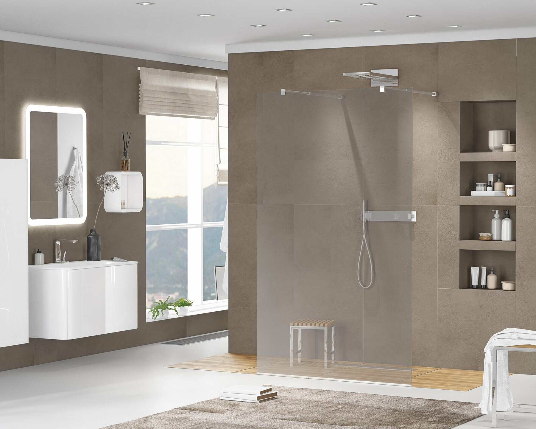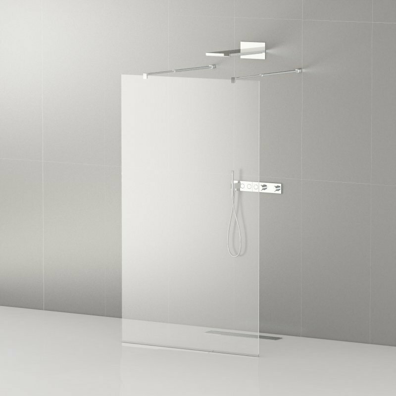 Стеклянная душевая перегородка Cezares Liberta L-2 130 LIBERTA-L-2-130-C-Cr с двумя свободыми независимыми входами. Верхние телескопические кронштейны позволяют регулировать ширину входа.