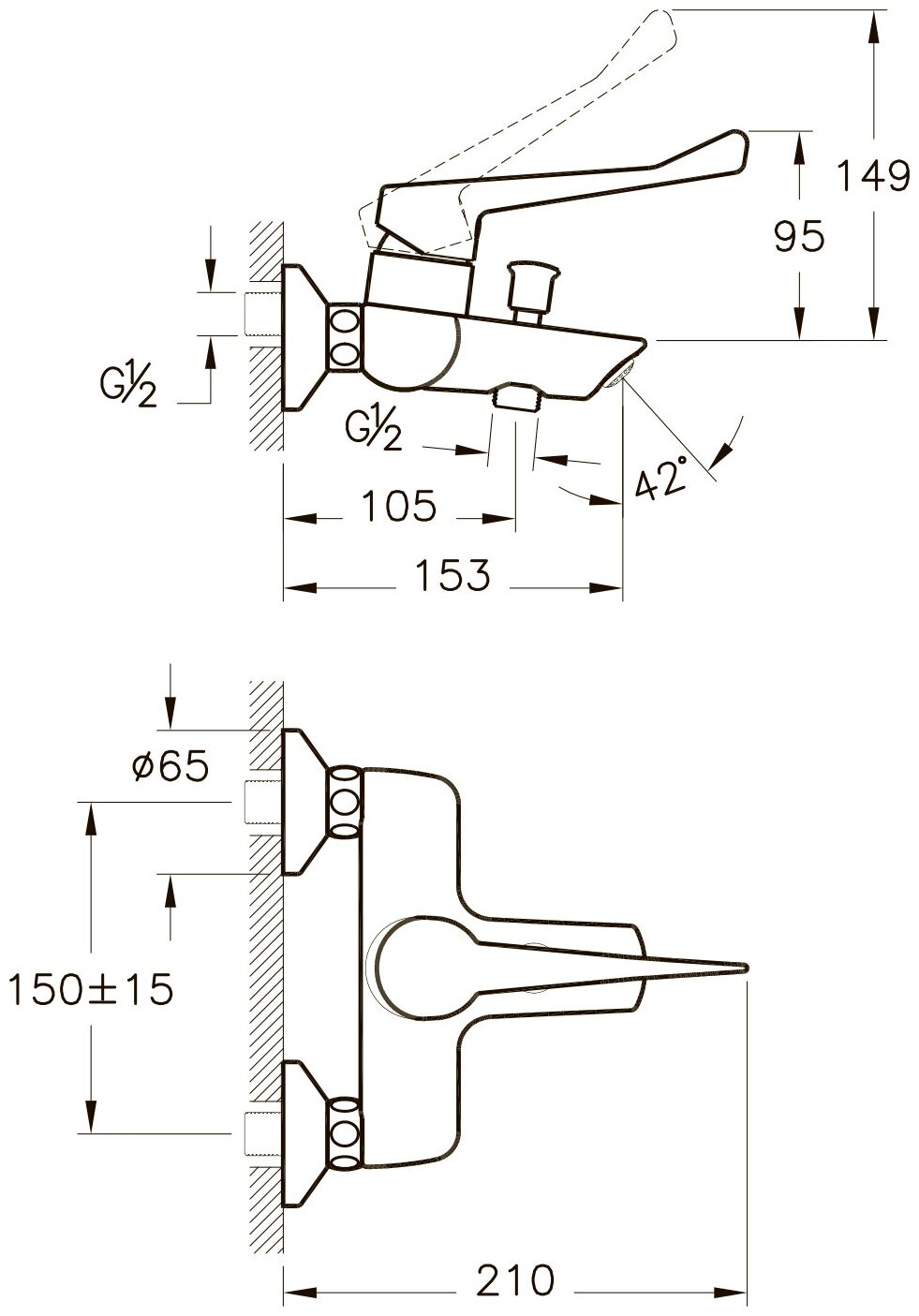 Удлиненная ручка смесителя для локтевого управления и удобства использования людьми с ограниченными возможностями.