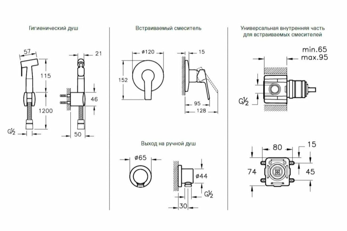 | ВКоробке | Гигиенический душ - 1 шт. Шланг - 1 шт. Настенный держатель - 1 шт. Смеситель - 1 шт. Скрытая монтажная часть - 1 шт. Шланговое подключение - 1 шт. Инструкция - 1 шт. |