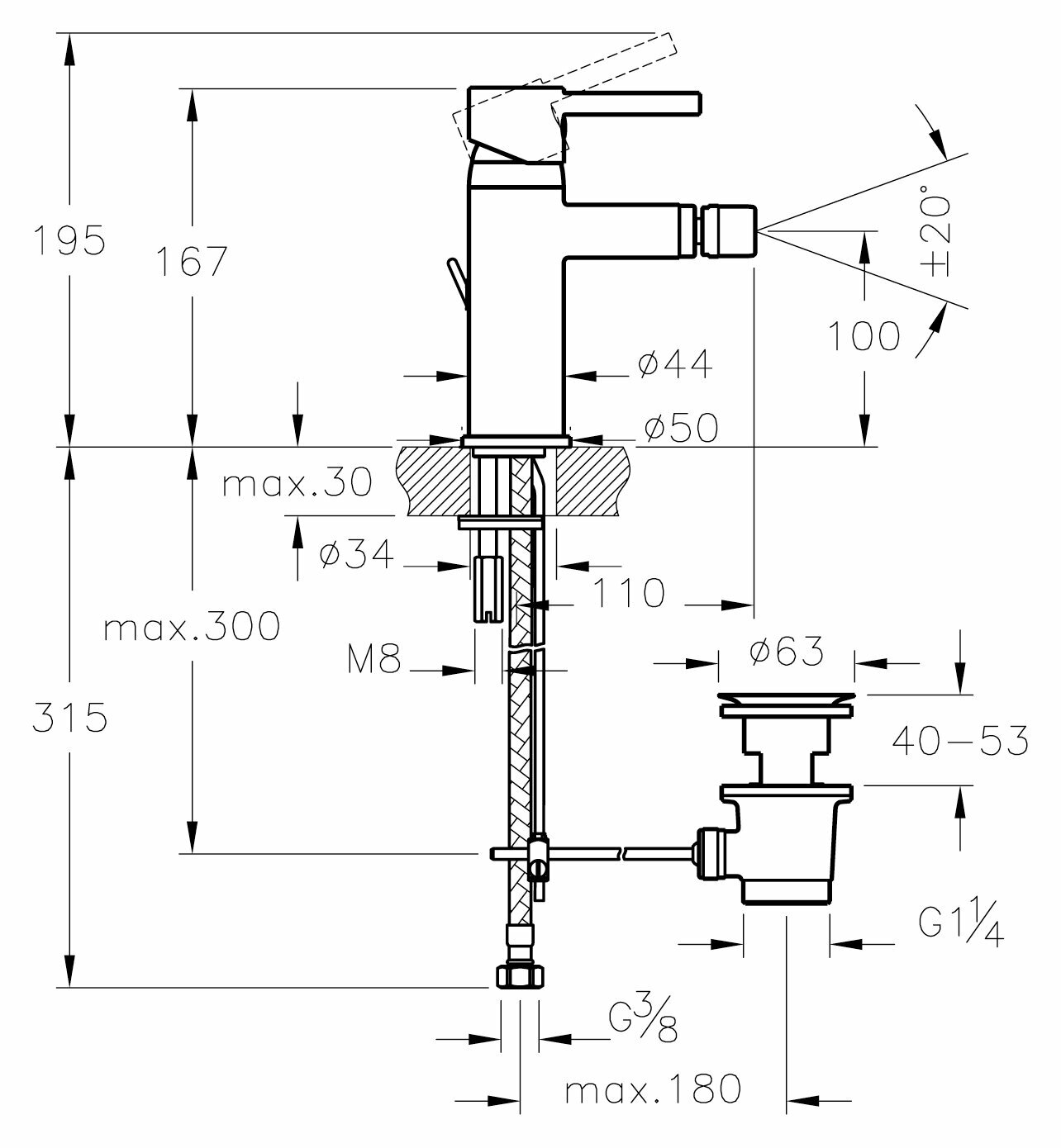 | Диаметр отверстия в раковине | 40 |