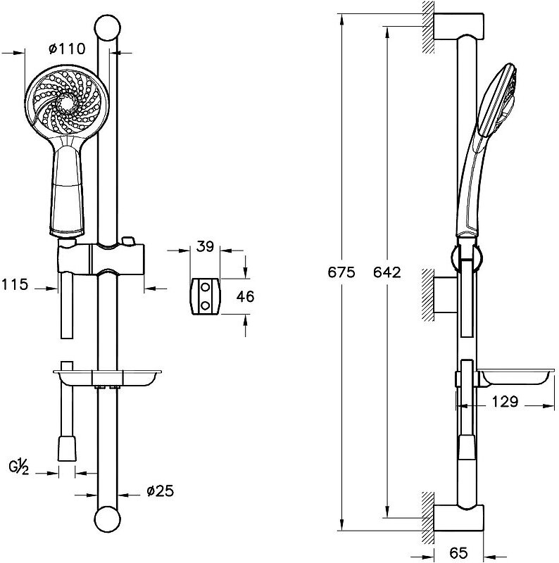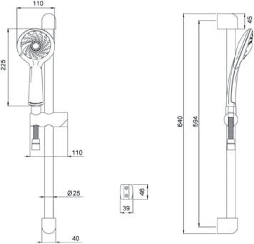 | Оснащение | душевая лейка, душевая штанга, мыльница, настенный держатель, шланг для душа, настенный держатель |