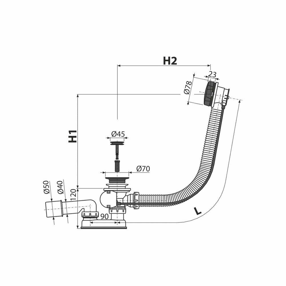 Сифон для ванны автомат Alca plast A55K. Сливная пробка для ванны.