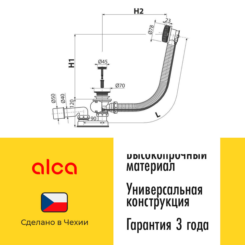 Полуавтоматический слив-перелив для ванны Alcaplast изготавливается из высококачественных материалов.