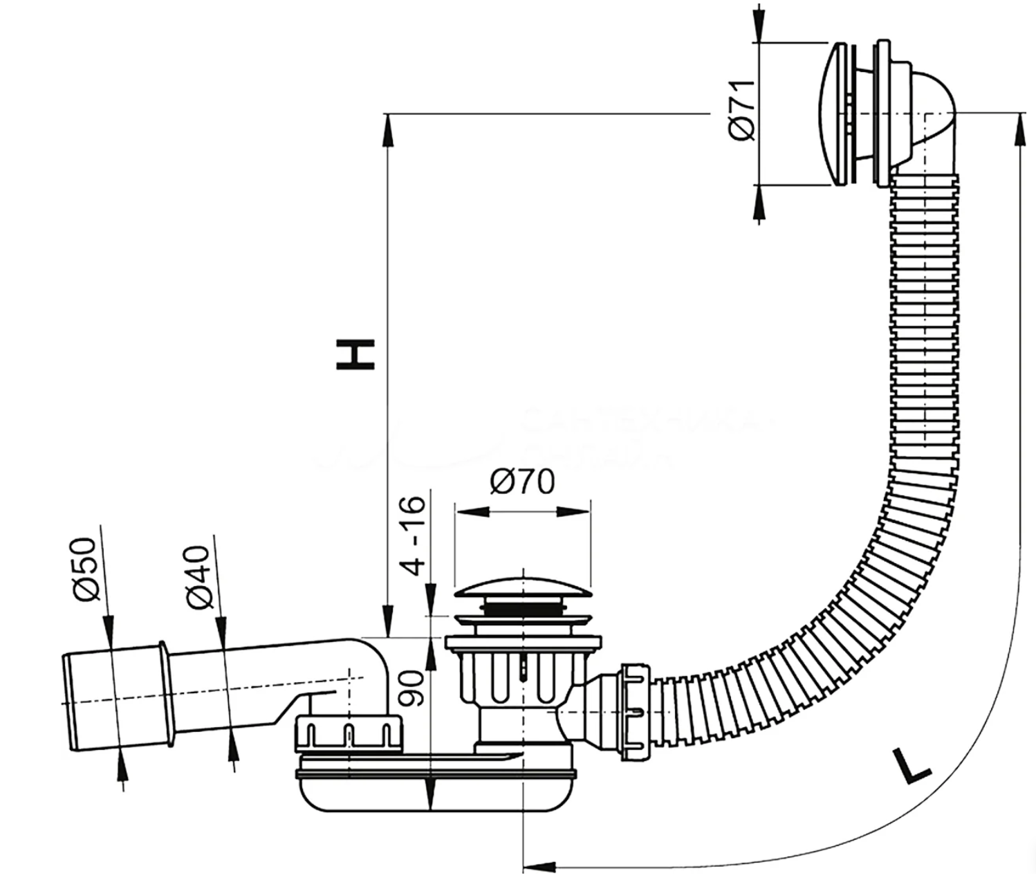 Сифон полуавтомат для ванны Alca Plast 51CR