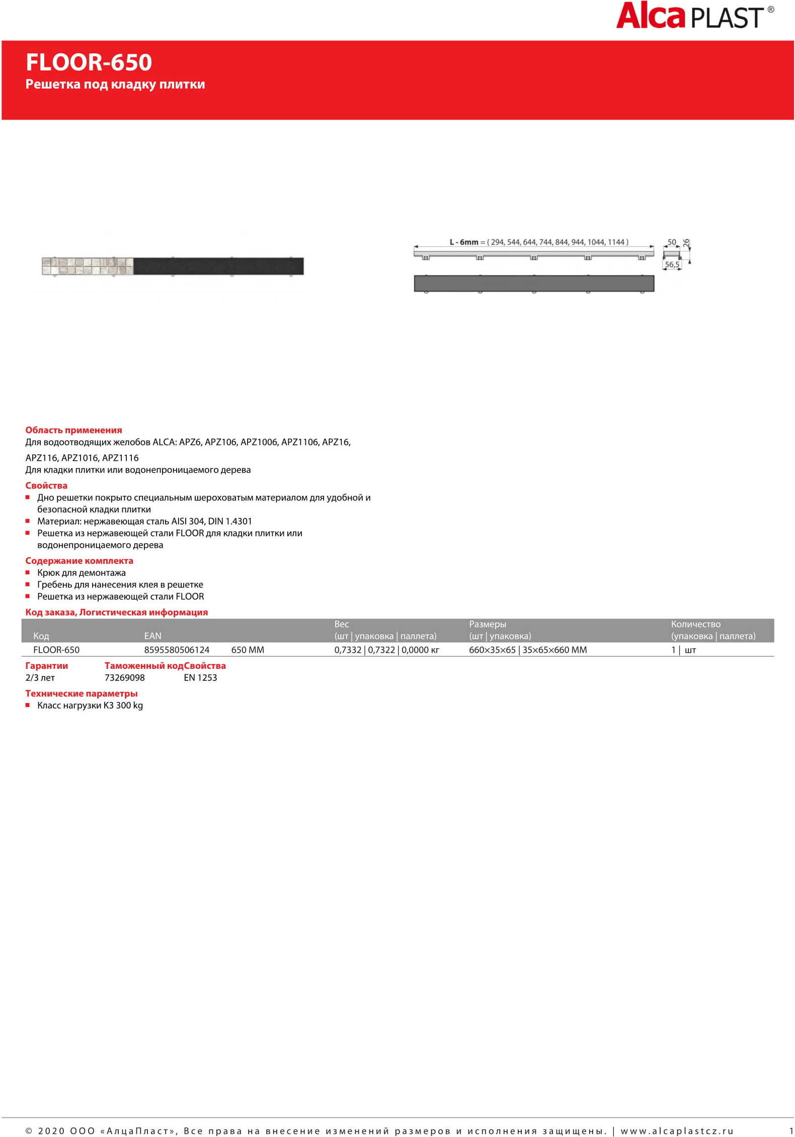 Решетка AlcaPlast FLOOR-650