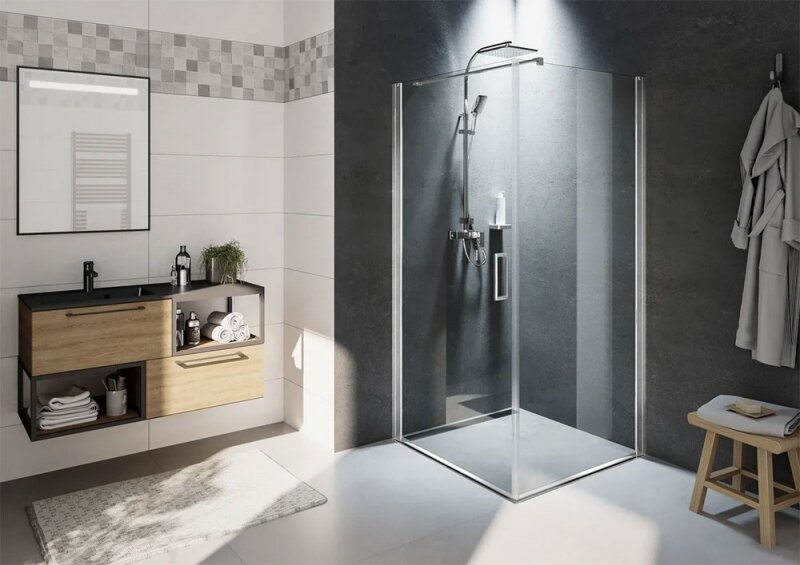 Novik Z201 100x100 без поддона. Степень II. Душевые шторки с плоским уплотнением и профилем порожка обеспечивают хорошую герметичность от разбрызгивания и стекания воды, профиль порожка при этом служит в качестве барьера для предотвращения протечки воды из душевой кабины.