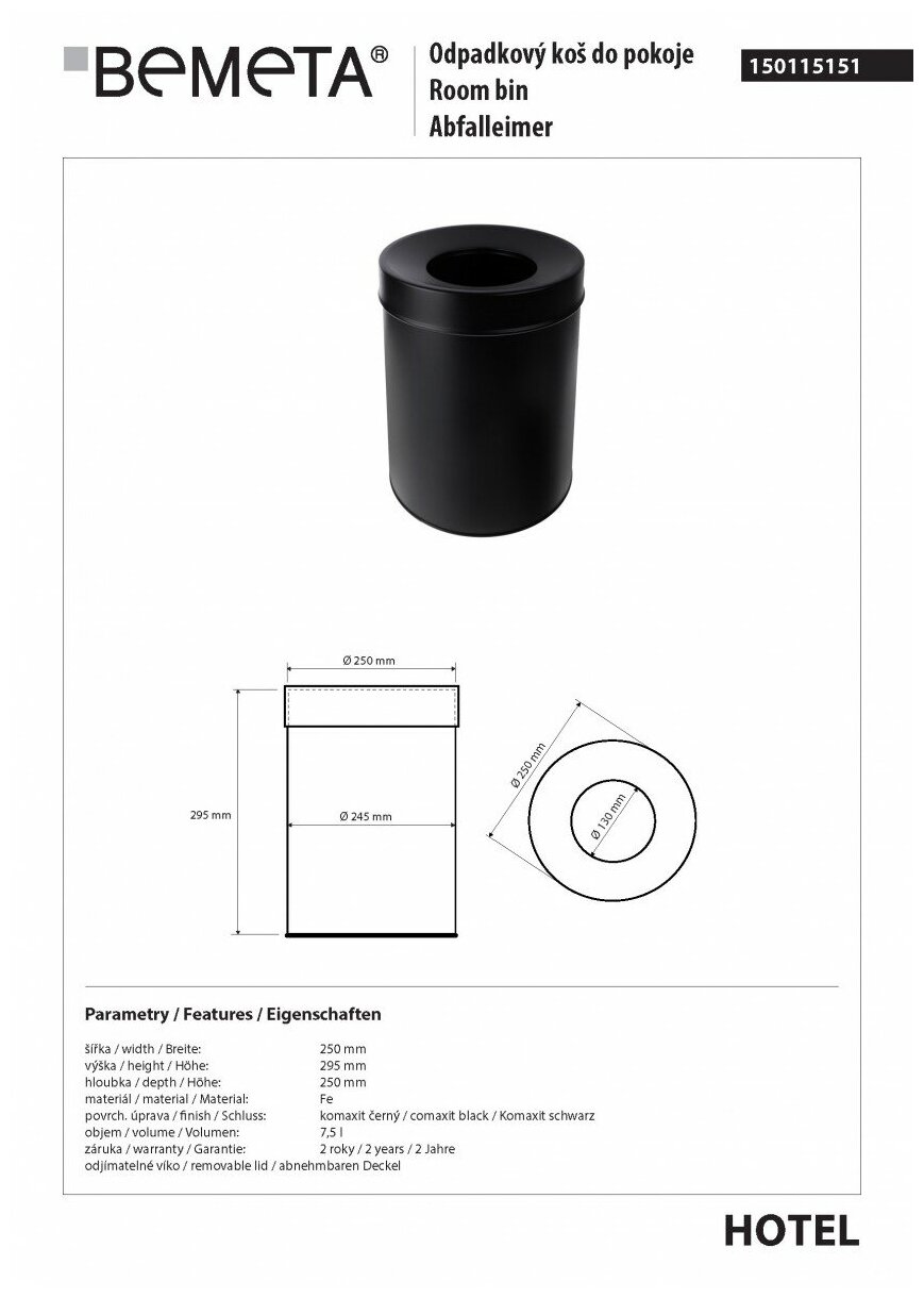 Ведро для мусора Bemeta Hotel 150115151