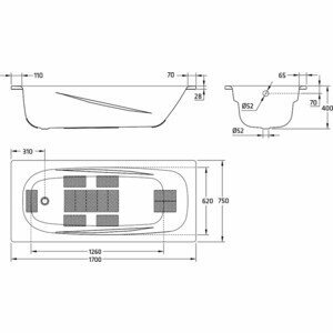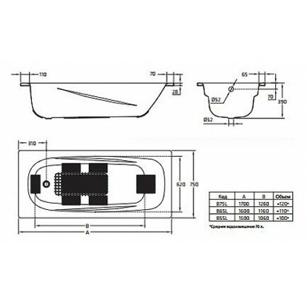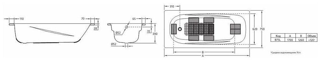 | Размеры ванны (см) | Размером 170x75 |