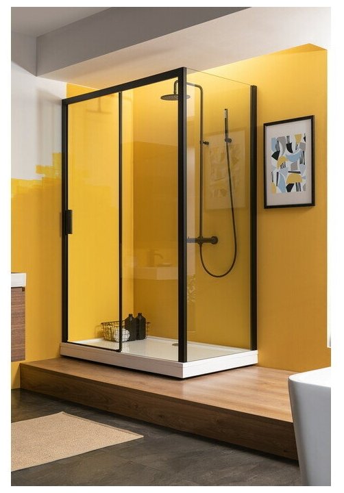 Сразу обратил внимание на эту дверь. Обычно они выглядят намного проще. У этой модели есть широкая рамка - можно хорошо расставить акценты в интерьере. Дверца функциональная и простая в эксплуатации. Она плавно открывается, закрывается без шума. Дверца герметично прилегает к стене, поэтому вода не вытекает на пол и не разбрызгивается по стенкам.