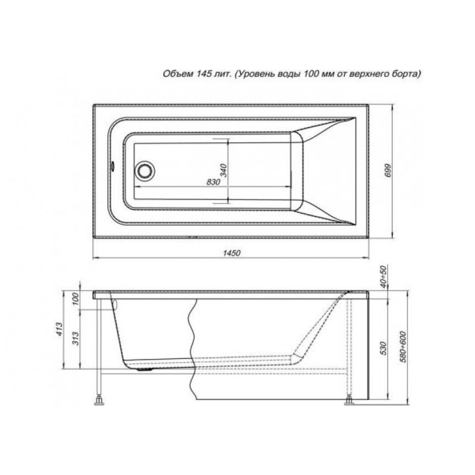 | Совместимые модели | ванна Aquanet Bright (145x70) |