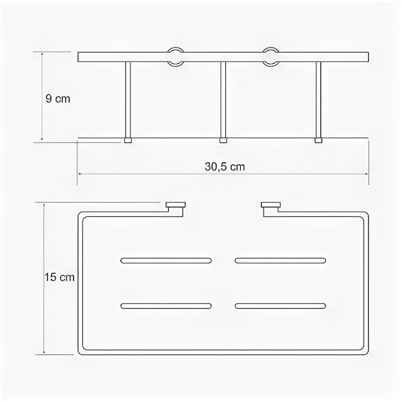 Полка металлическая прямая. Материал: металл, хромоникелевое покрытие, уплотнительные пластиковые кольца.