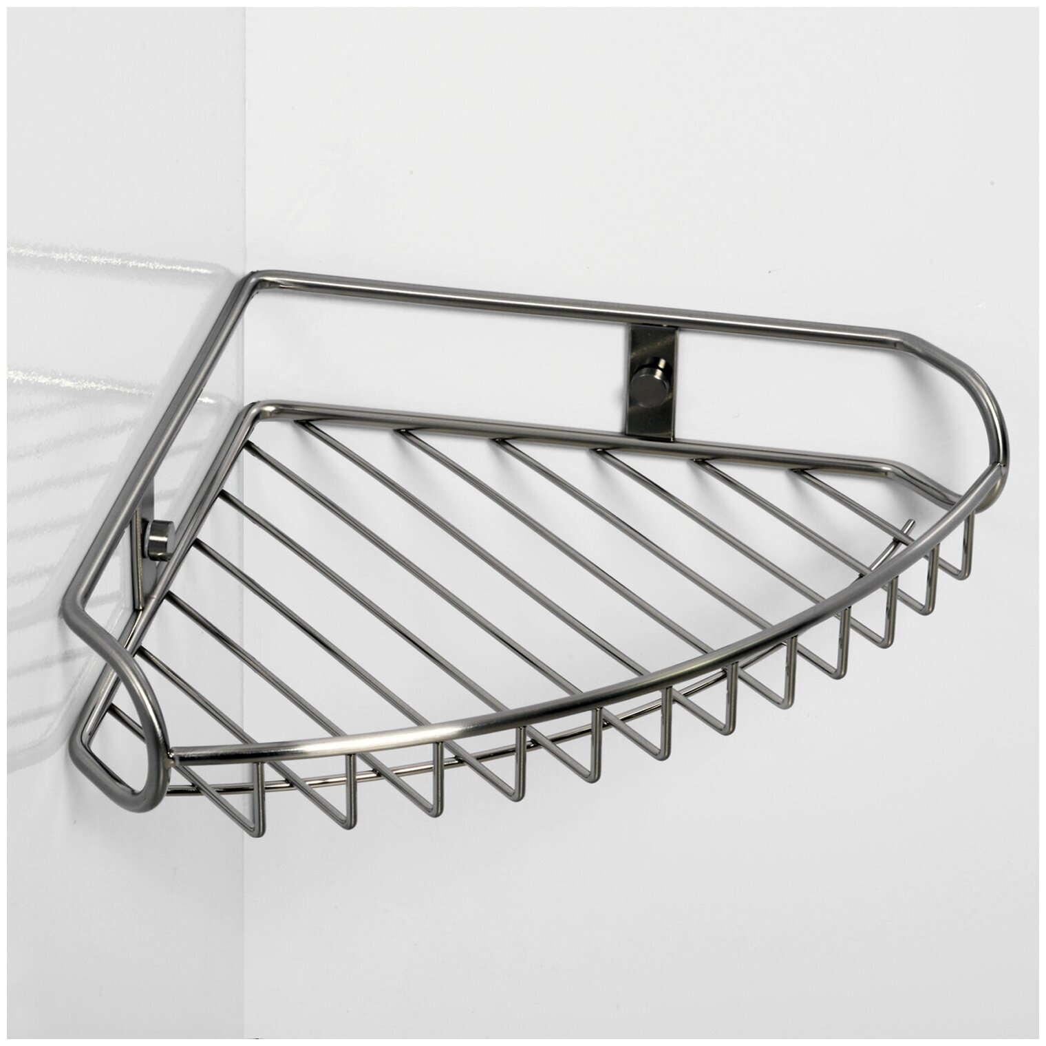 Полка металлическая угловая Wasserkraft Ammer . Для изготовления полки используется металл. Покрытие матовый хром устойчиво к потускнению и легко очищается. Уплотнительные пластиковые кольца предназначены для плотного и бесшумного соединения.