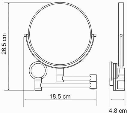 Зеркало двухстороннее, стандартное и с 3-х кратным увеличением. Материал: металл, хромоникелевое покрытие, уплотнительные пластиковые кольца.
