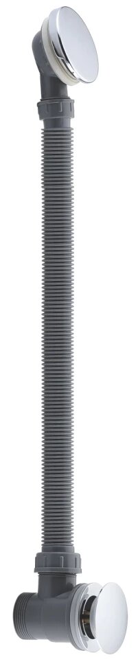 Слив-перелив — важная составная деталь в конструкции ванной. Обеспечивает быстрый вывод воды в канализацию и защищает ванну от переполненности. Одна часть изделия монтируется в дно, а другая устанавливается в стенку. Два этих элемента соединены шлангом. Быстро крепится, не занимая много времени. Представленная модель имеет общую длину 650 мм, присоединительный размер G 1 1/2