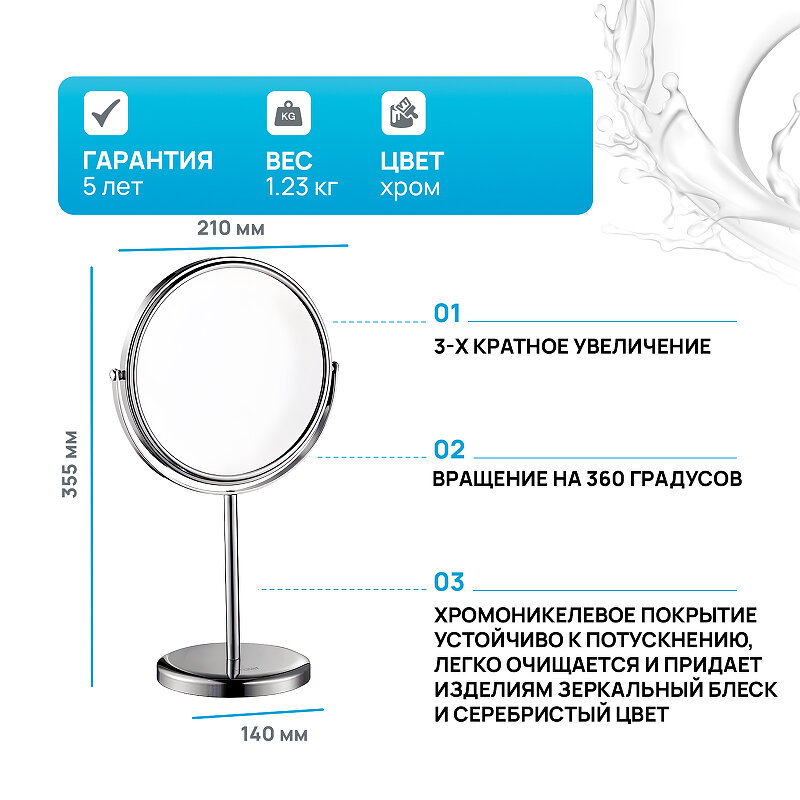 - Зеркало двухстороннее, стандартное, с 3-х кратным увеличением