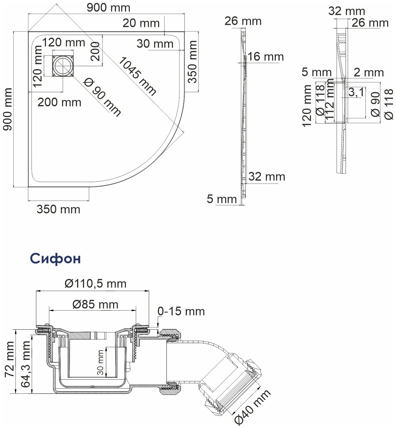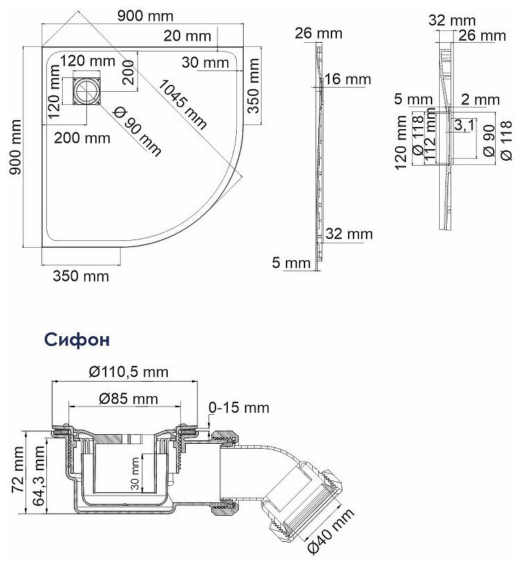 | Комплектация | поддон, сифон, инструкция |
