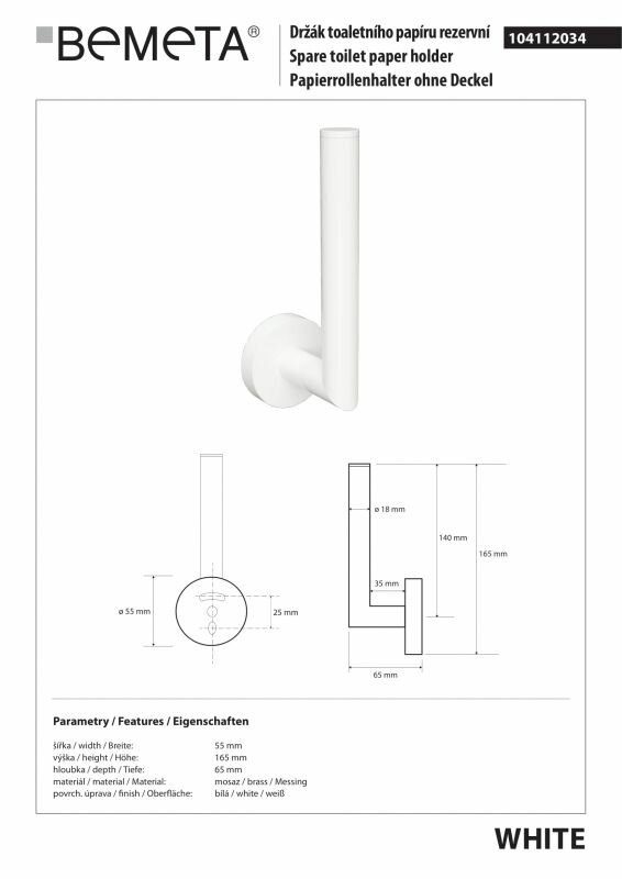 | ВКоробке | Держатель для запасных рулонов - 1 шт. Набор креплений - 1 шт. Инструкция - 1 шт. |