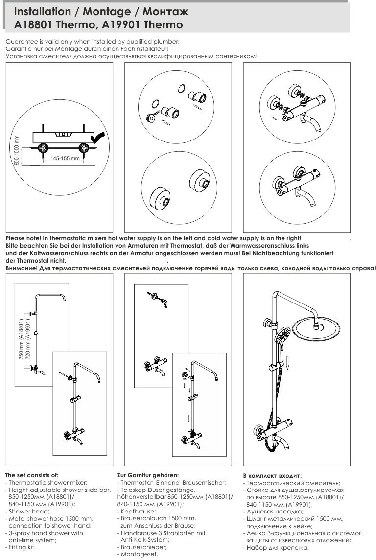 - Обзор душевого комплекта с термостатическим смесителем A19901 Thermo
