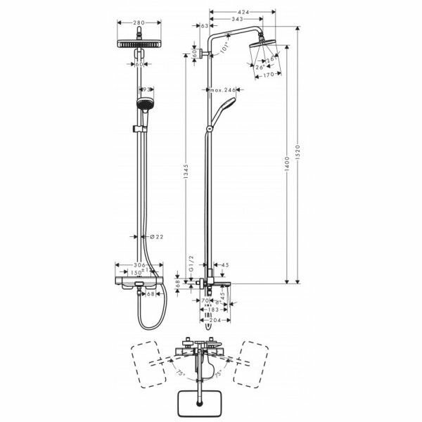 - Обзор душевой системы для душа с термостатом Hansgrohe Croma E Showerpipe 280 1jet 27630000